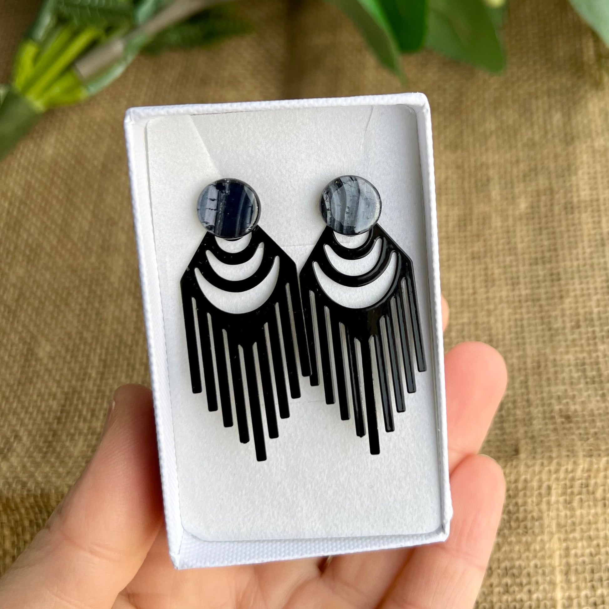 Smukke 3in1 ørestikkere i cernit ler med messing. Smykkedele i kirurgisk stål. One of a kind :) Leveres i smykkeæske.