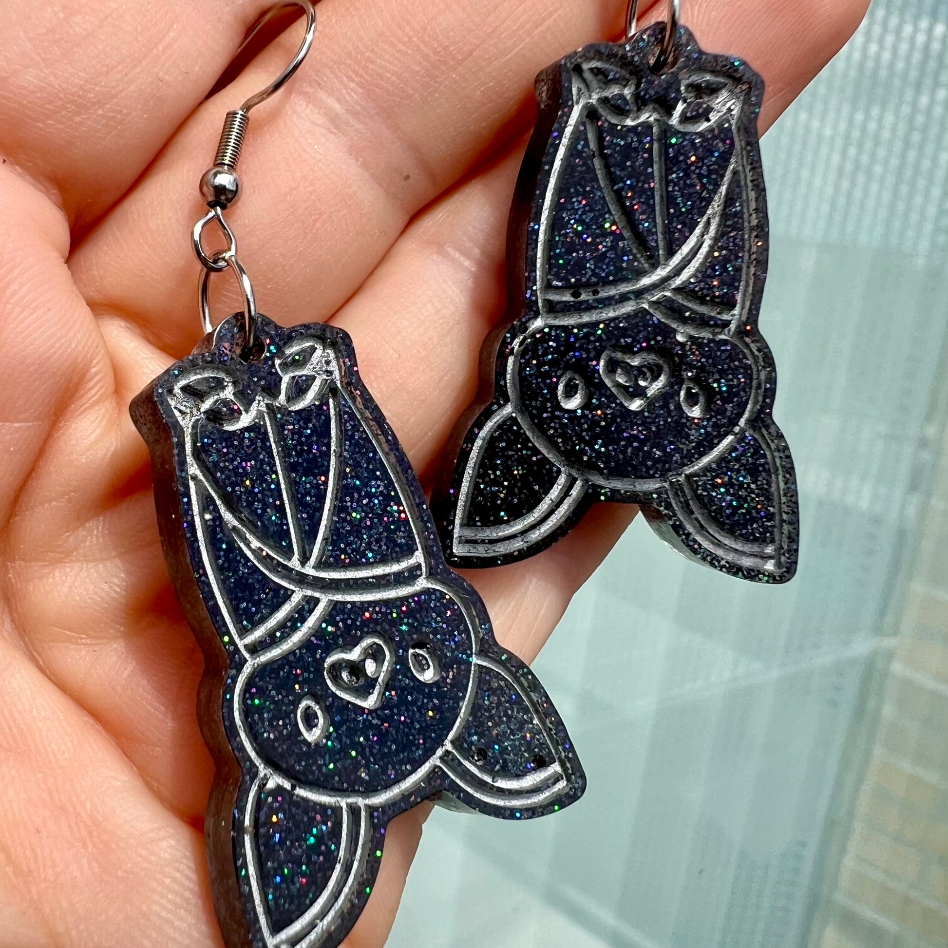 Øreringe i resin. Smykkedele i kirurgisk stål. Da alle smykkerne er håndlavet kan de variere en smule i udseende. Leveres i smykkeæske.
