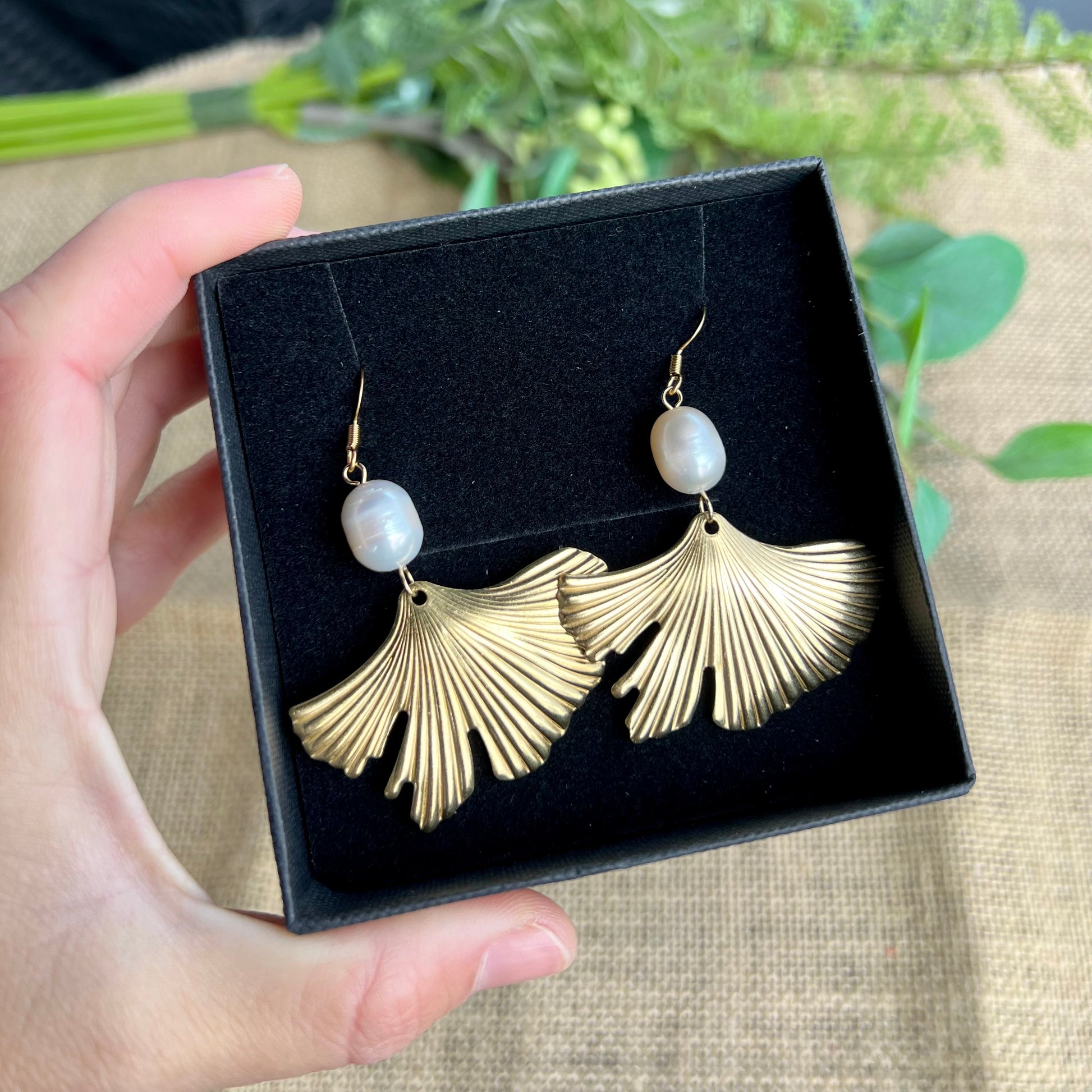 Øreringe med ferskvandsperle med krog i forgyldt kirurgisk stål. Leveres i smykkeæske.