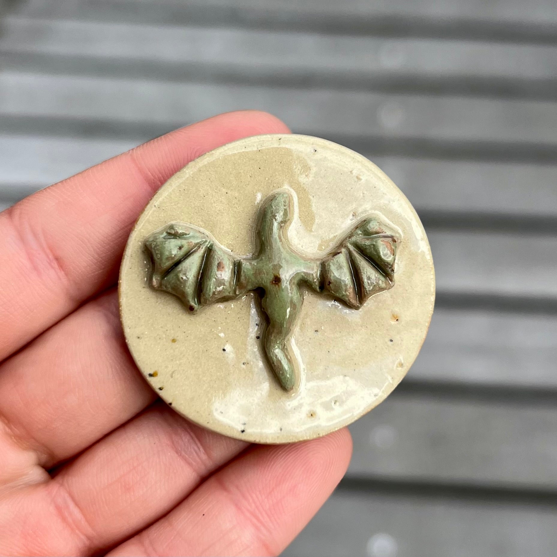 Denne keramiske køleskabsmagnet er lavet af stentøjsler og glaseret for et smukt finish. Et unikt og håndlavet lille kunstværk, der giver personlighed til dit køleskab.
