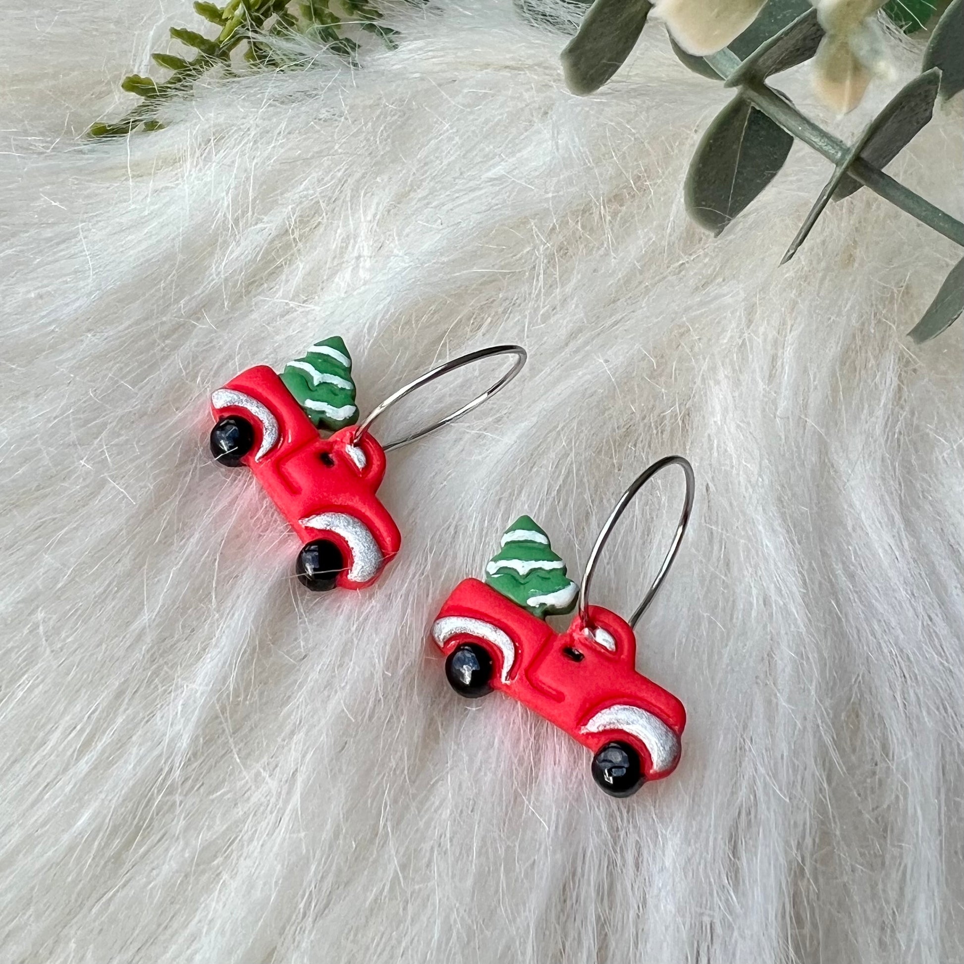Jule øreringe i cernit ler med håndmalede detaljer, lakeret med resin. Smykkedele i kirurgisk stål. Leveres i smykkeæske.