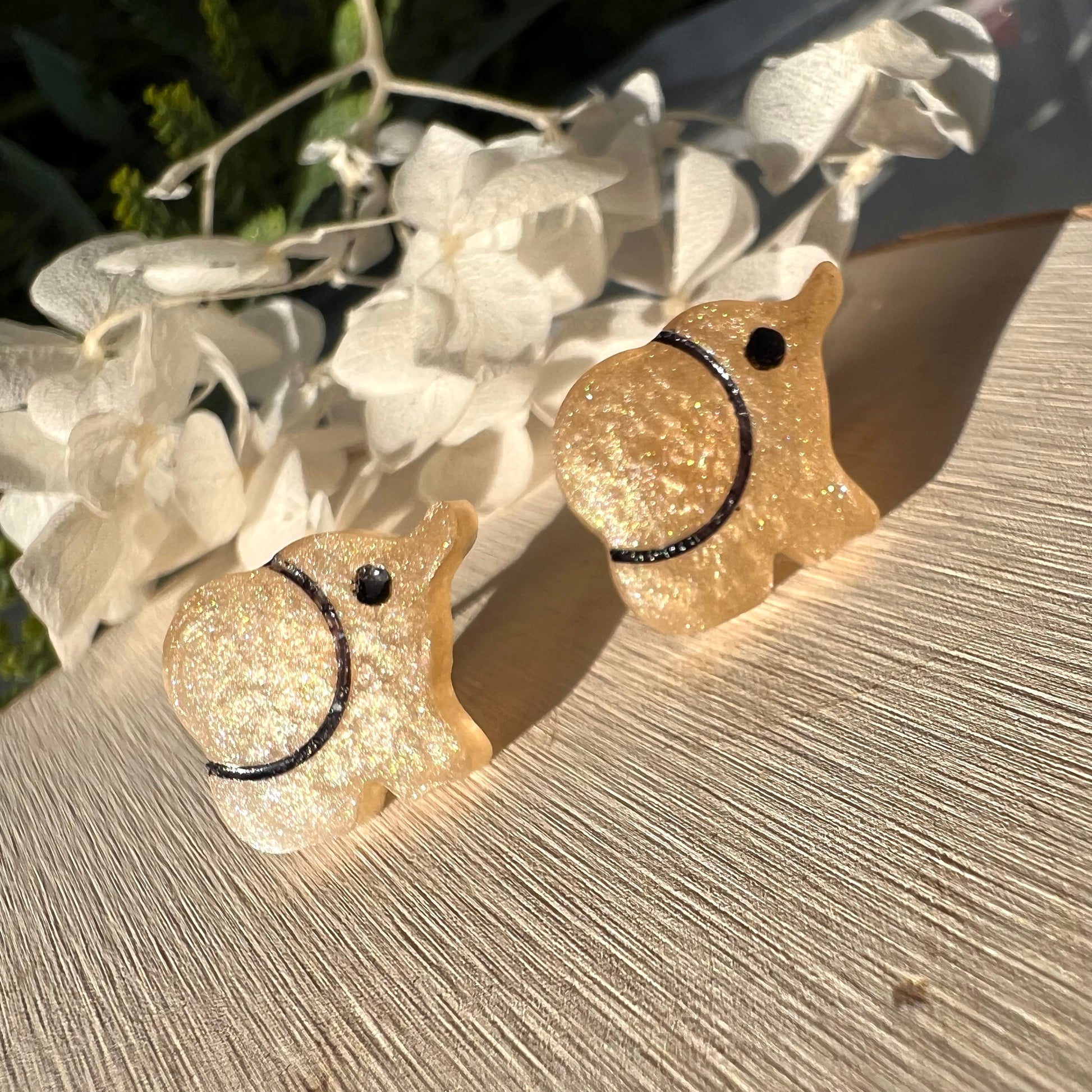 Elefant ørestikkere i resin. Smykkedele i kirurgisk stål. Leveres i smykkeæske.