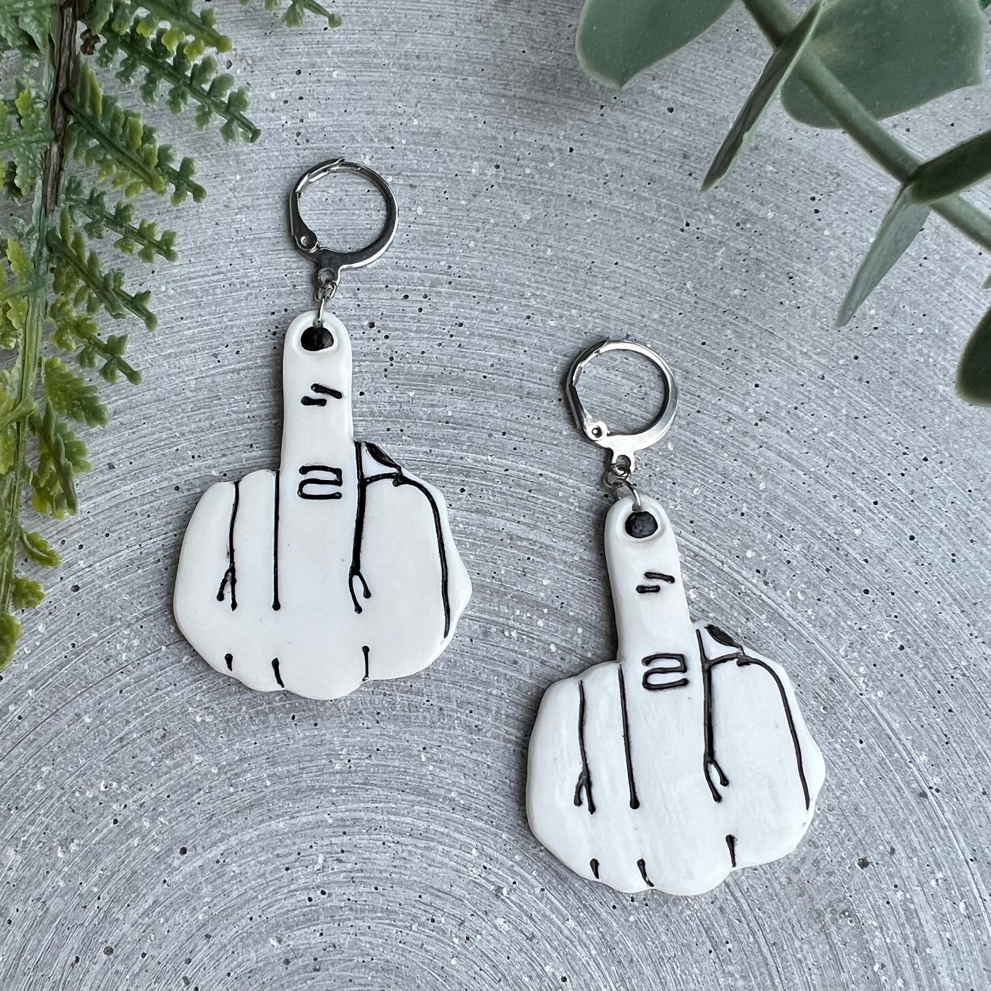 Øreringe i cernit ler med håndmalede detaljer. Smykkedele i kirurgisk stål. Leveres i smykkeæske.