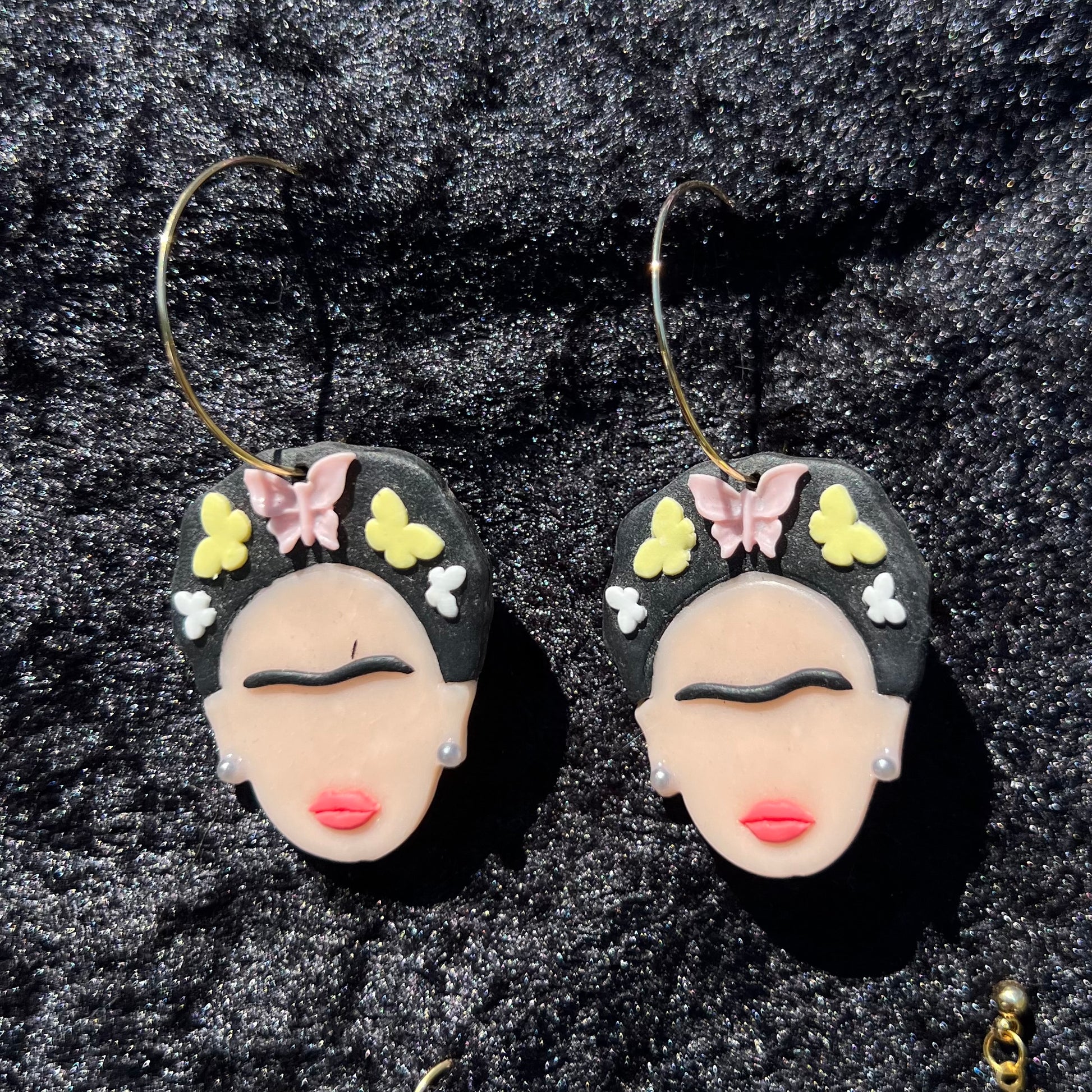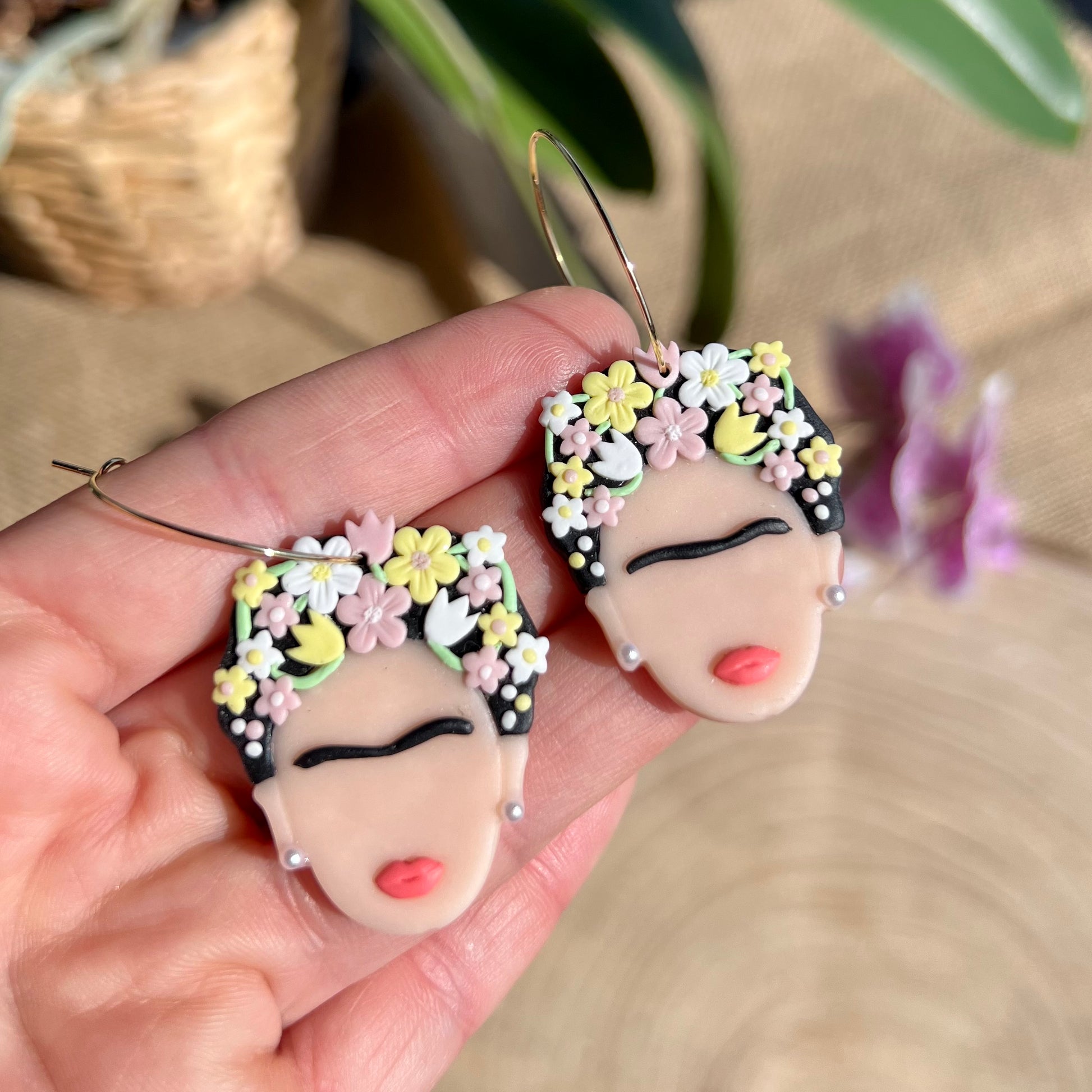 Smukke Frida øreringe i cernit ler. Smykkedele i kirurgisk stål. Leveres i smykkeæske.