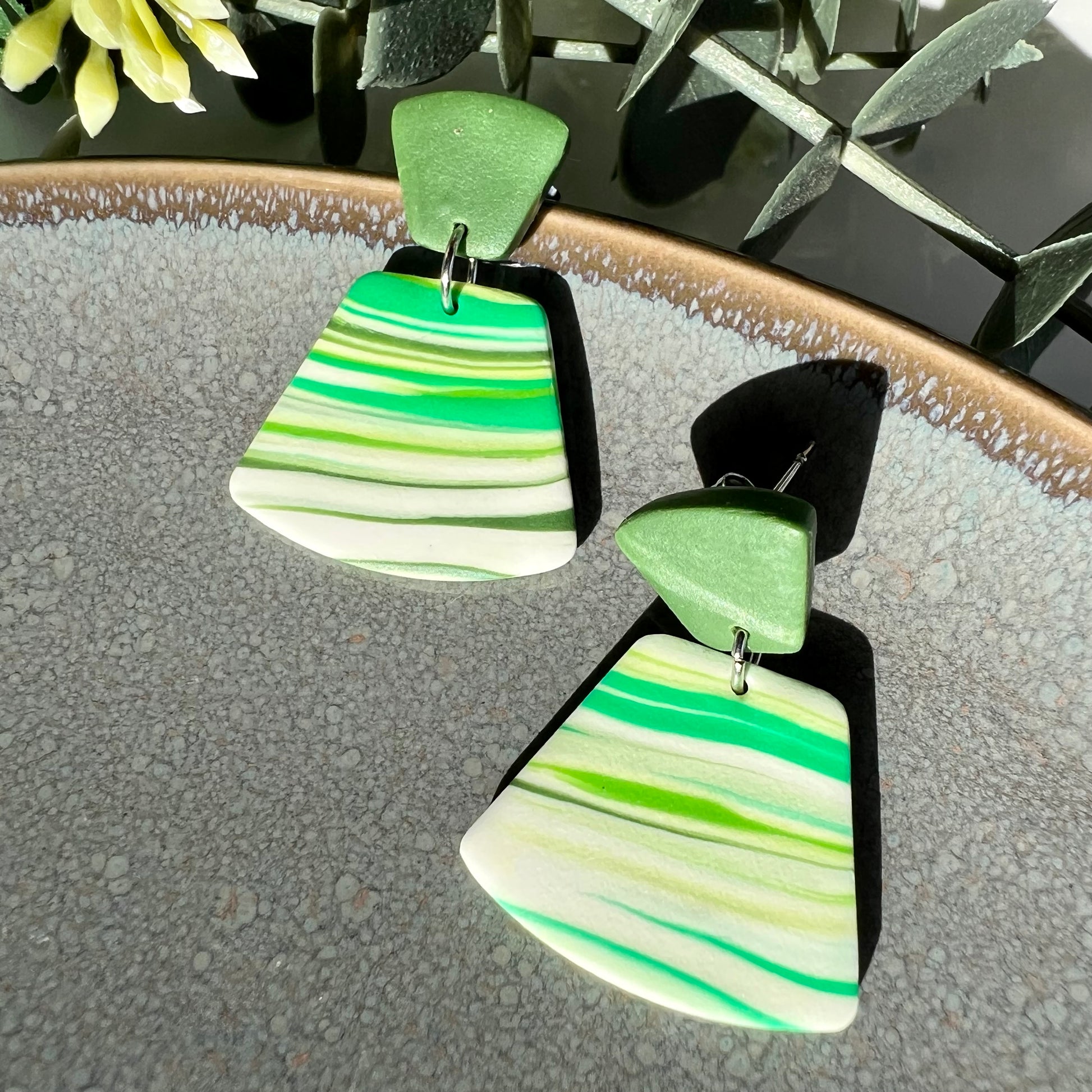 Smukke grøn ørestikkere i cernit ler. Smykkedele i kirurgisk stål. One of a kind :) Leveres i smykkeæske.