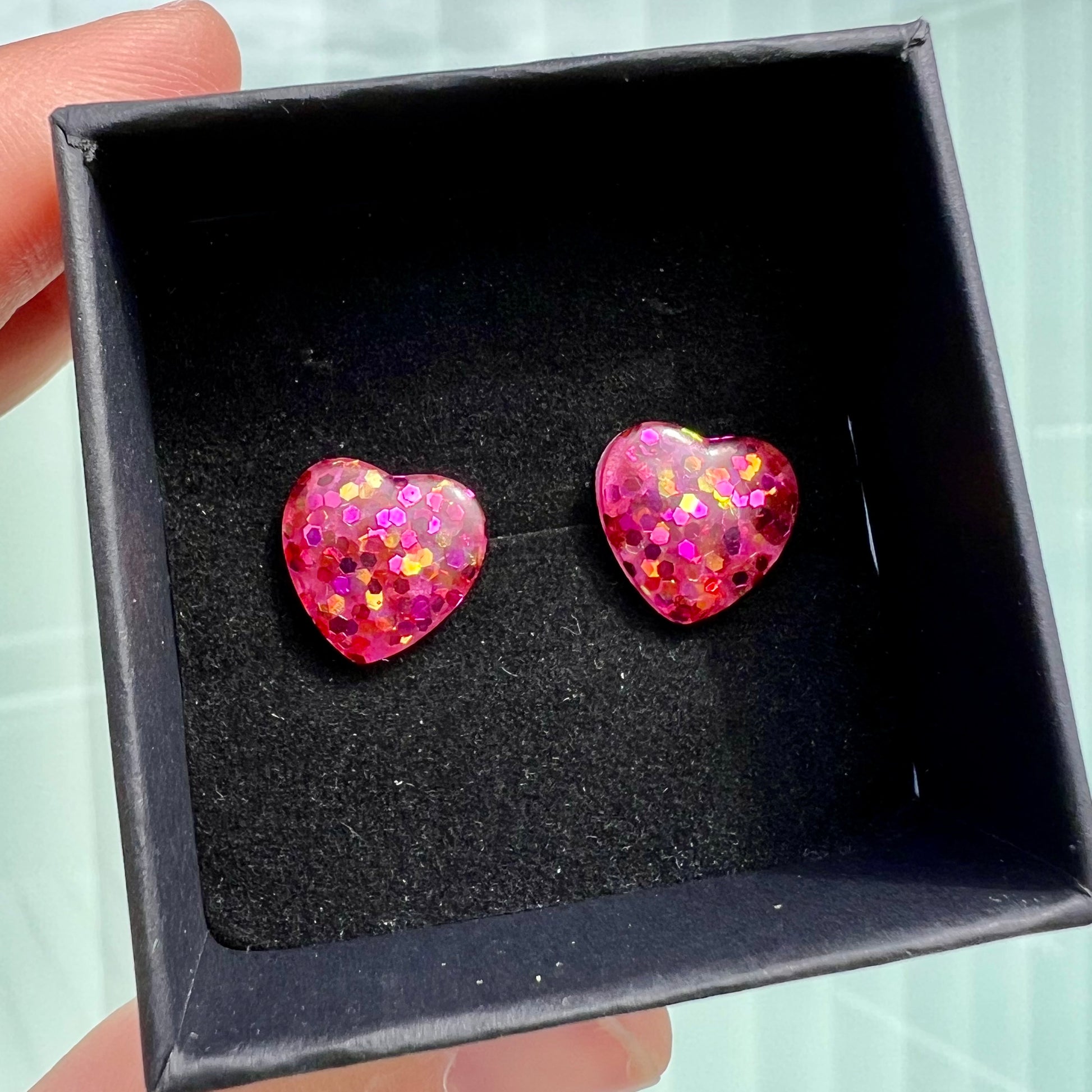 Ørestikkere i resin. Smykkedele i kirurgisk stål. Leveres i smykkeæske.
