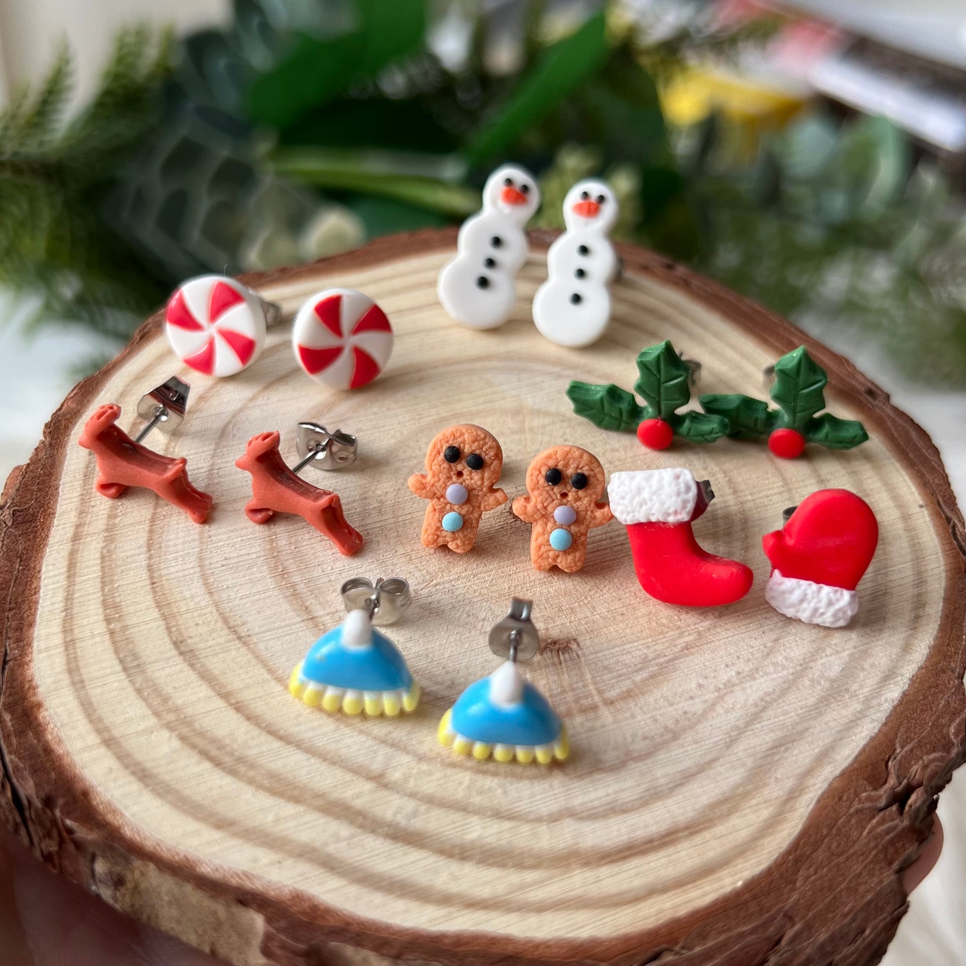Juleørestikker i cernit ler med håndmalede detaljer. Smykkedele i kirurgisk stål. Leveres i smykkeæske.