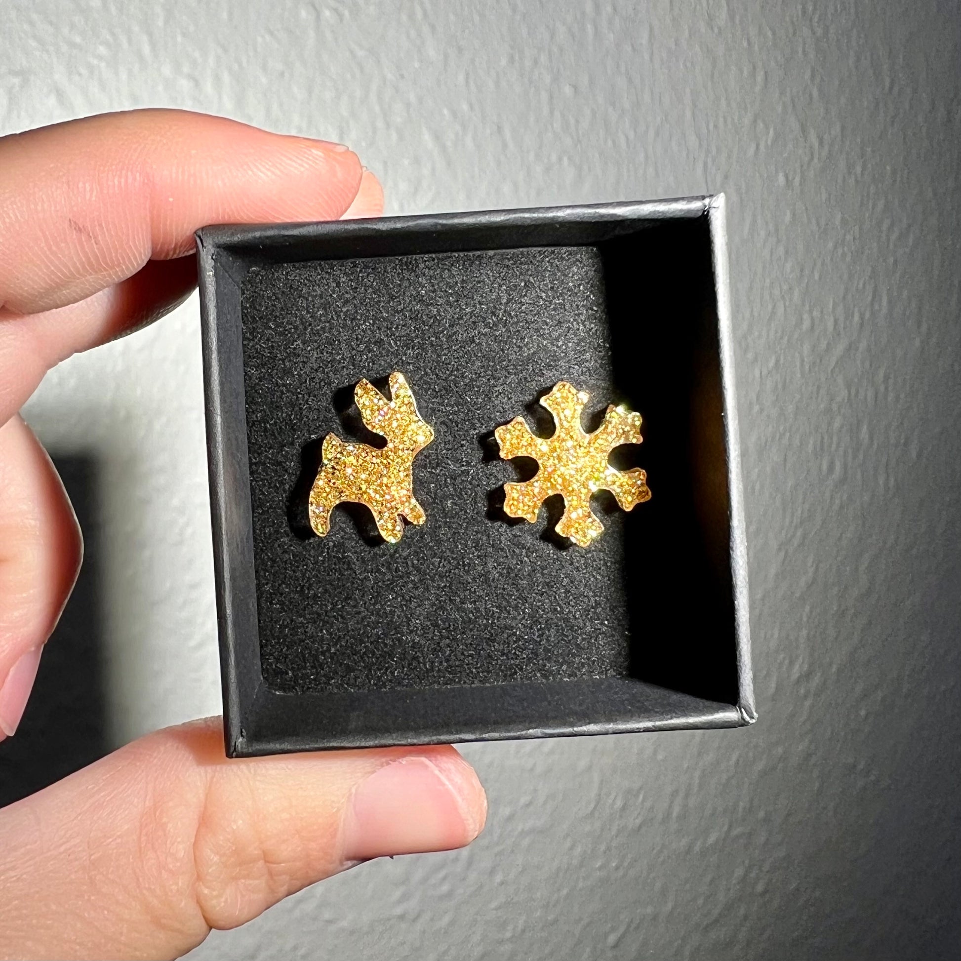 Juleørestikkere i resin. Smykkedele i kirurgisk stål. Leveres i smykkeæske.