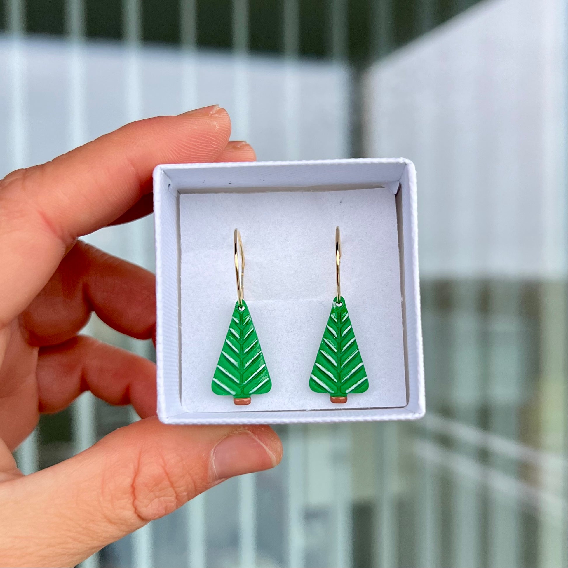 Jule øreringe i cernit ler med håndmalede detaljer, lakeret med resin. Smykkedele i kirurgisk stål. Leveres i smykkeæske.