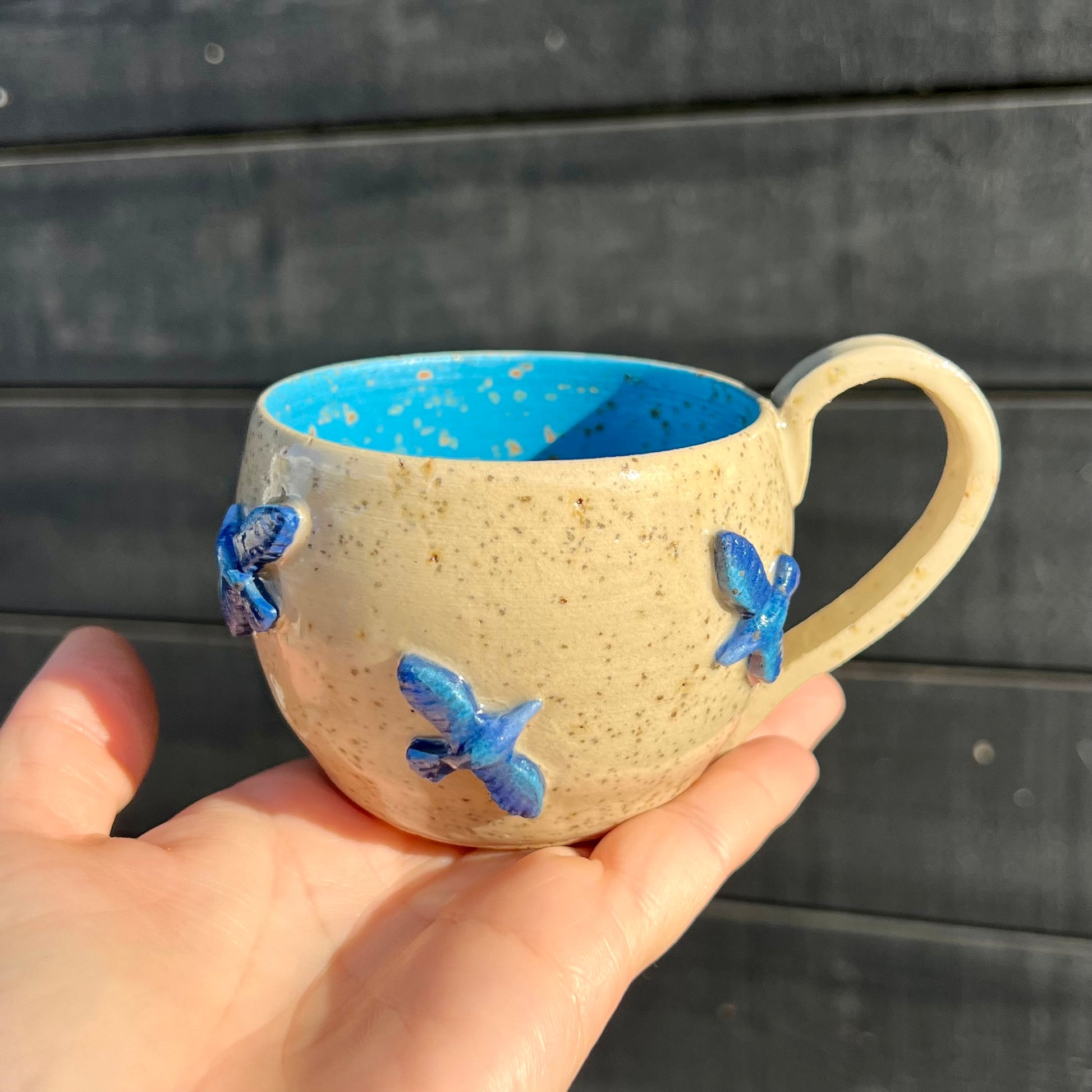 Denne kop er en unik, håndlavet kop. Den er drejet i stentøj og glaseret med omhu. Da hver kop er skabt i hånden, og glasuren reagerer forskelligt under brændingen, vil der opstå små variationer, som gør hver enkelt kop helt unik. Den tåler opvaskemaskine.