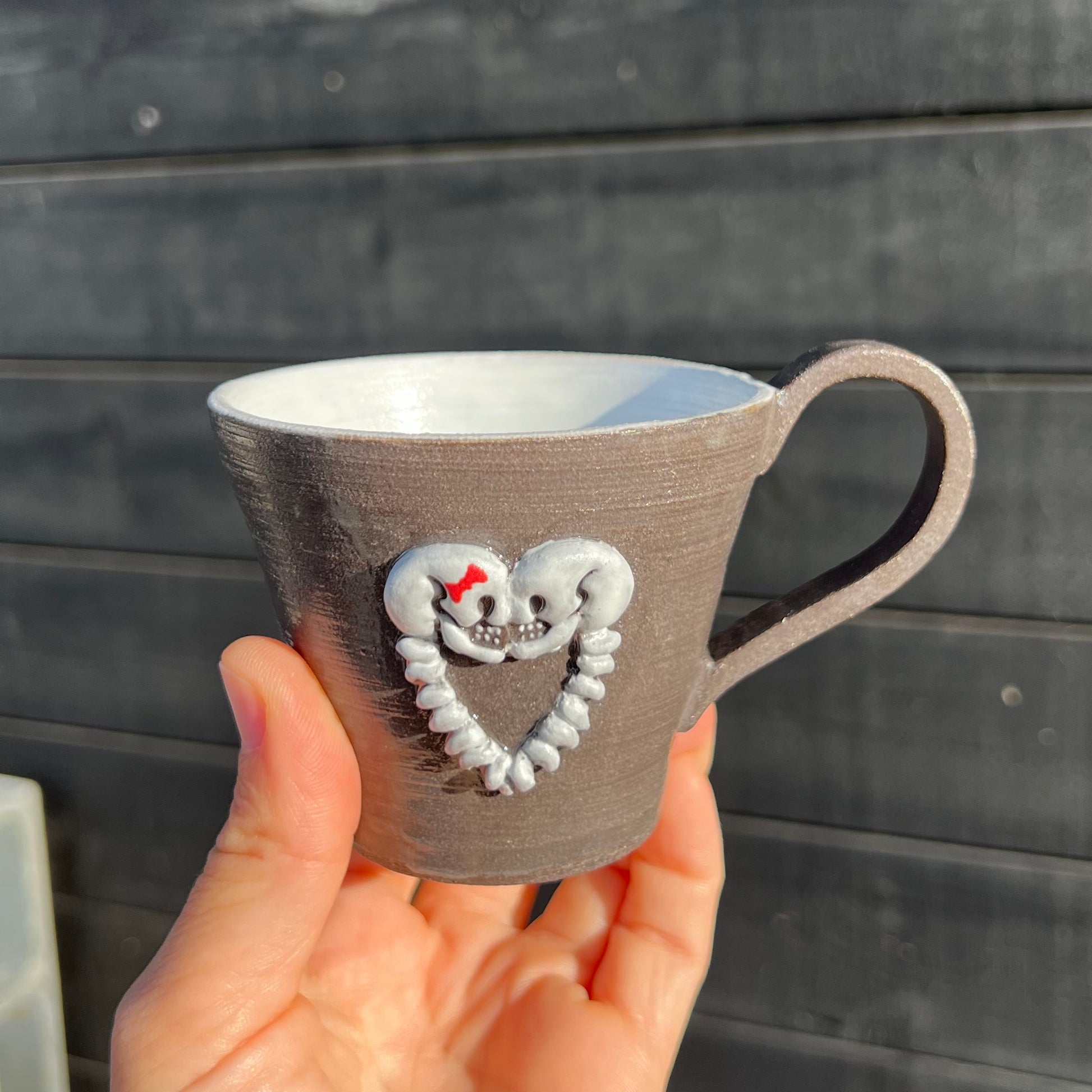 Denne kop er en unik, håndlavet kop. Den er drejet i stentøj og glaseret med omhu. Da hver kop er skabt i hånden, og glasuren reagerer forskelligt under brændingen, vil der opstå små variationer, som gør hver enkelt kop helt unik. Den tåler opvaskemaskine.