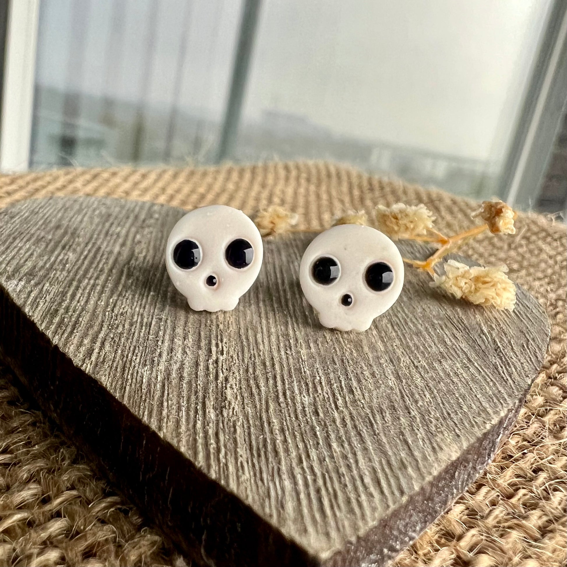 Kranie ørestikker i cernit ler med håndmalede detaljer. Smykkedele i kirurgisk stål. Leveres i smykkeæske.