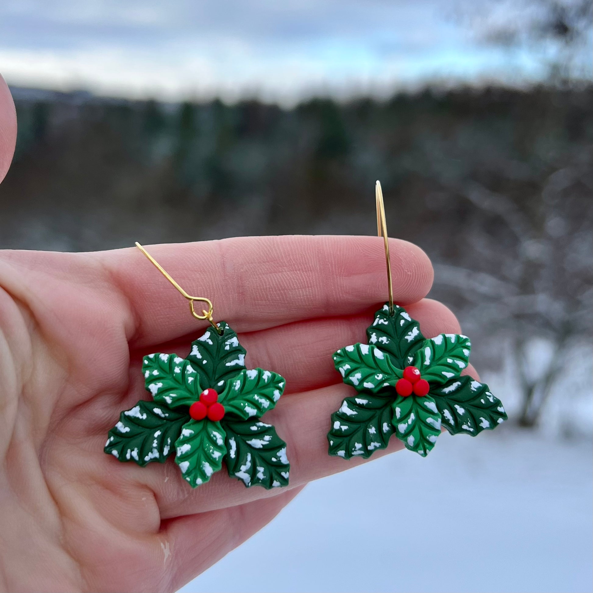 Jule øreringe i cernit ler med håndmalede detaljer, lakeret med resin. Smykkedele i kirurgisk stål. Leveres i smykkeæske.