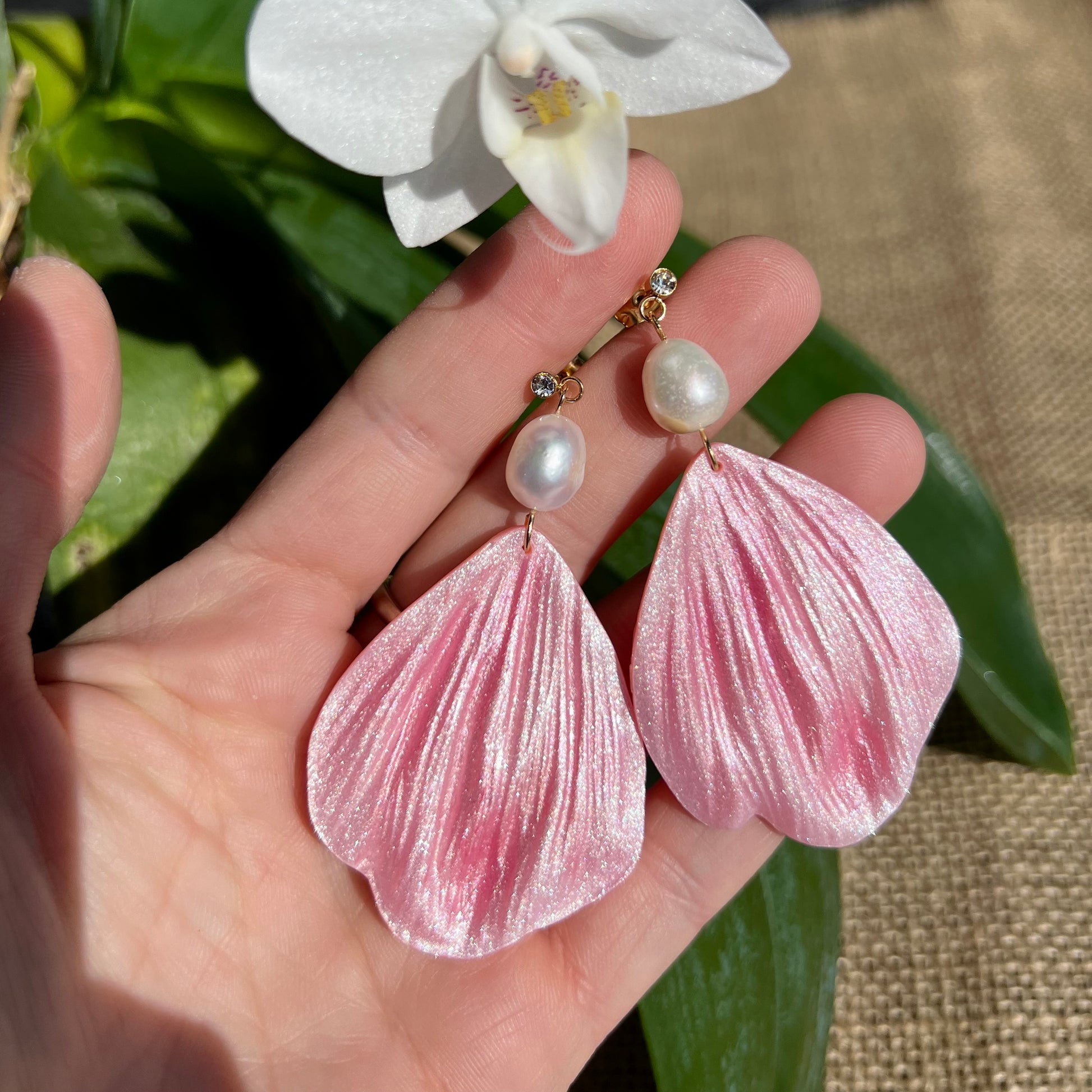 Smukke blomster-øreringe i cernit ler, lakeret med resin. Smykkedele i forgyldt kirurgisk stål. Leveres i smykkeæske.
