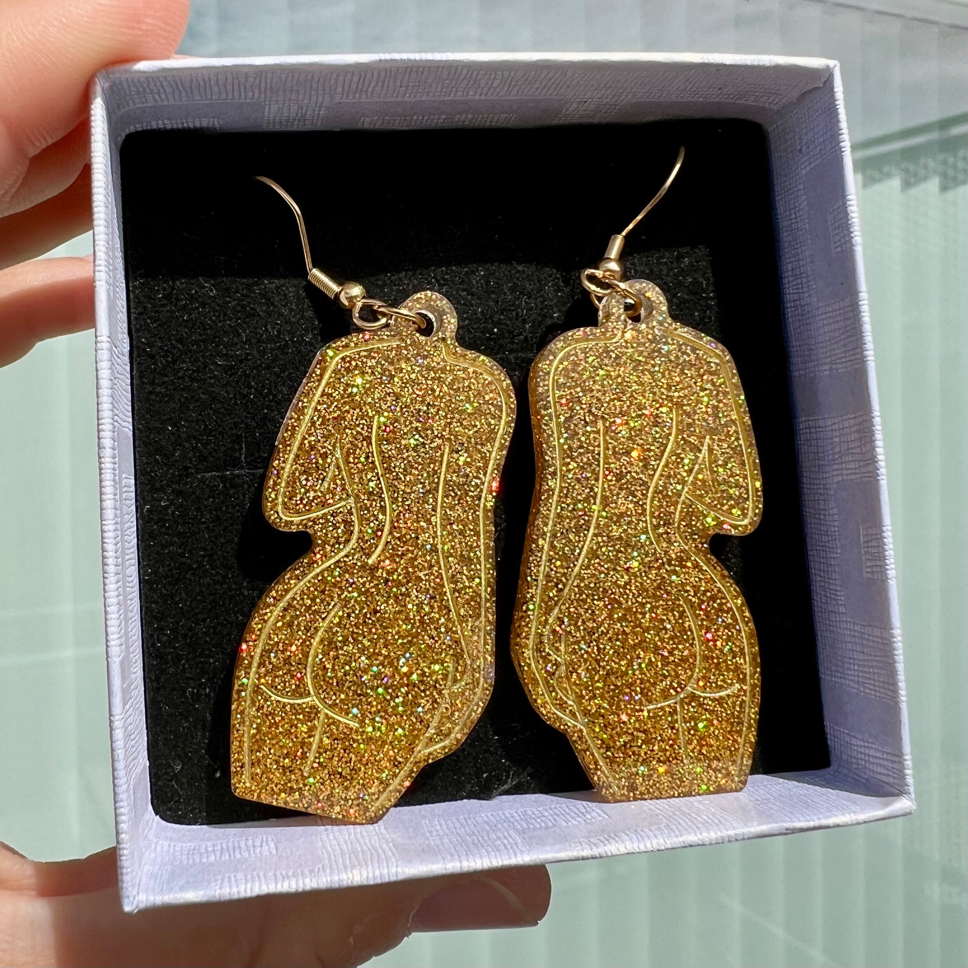 Øreringe i resin. Smykkedele i kirurgisk stål. Da alle smykkerne er håndlavet kan de variere en smule i udseende. Leveres i smykkeæske.