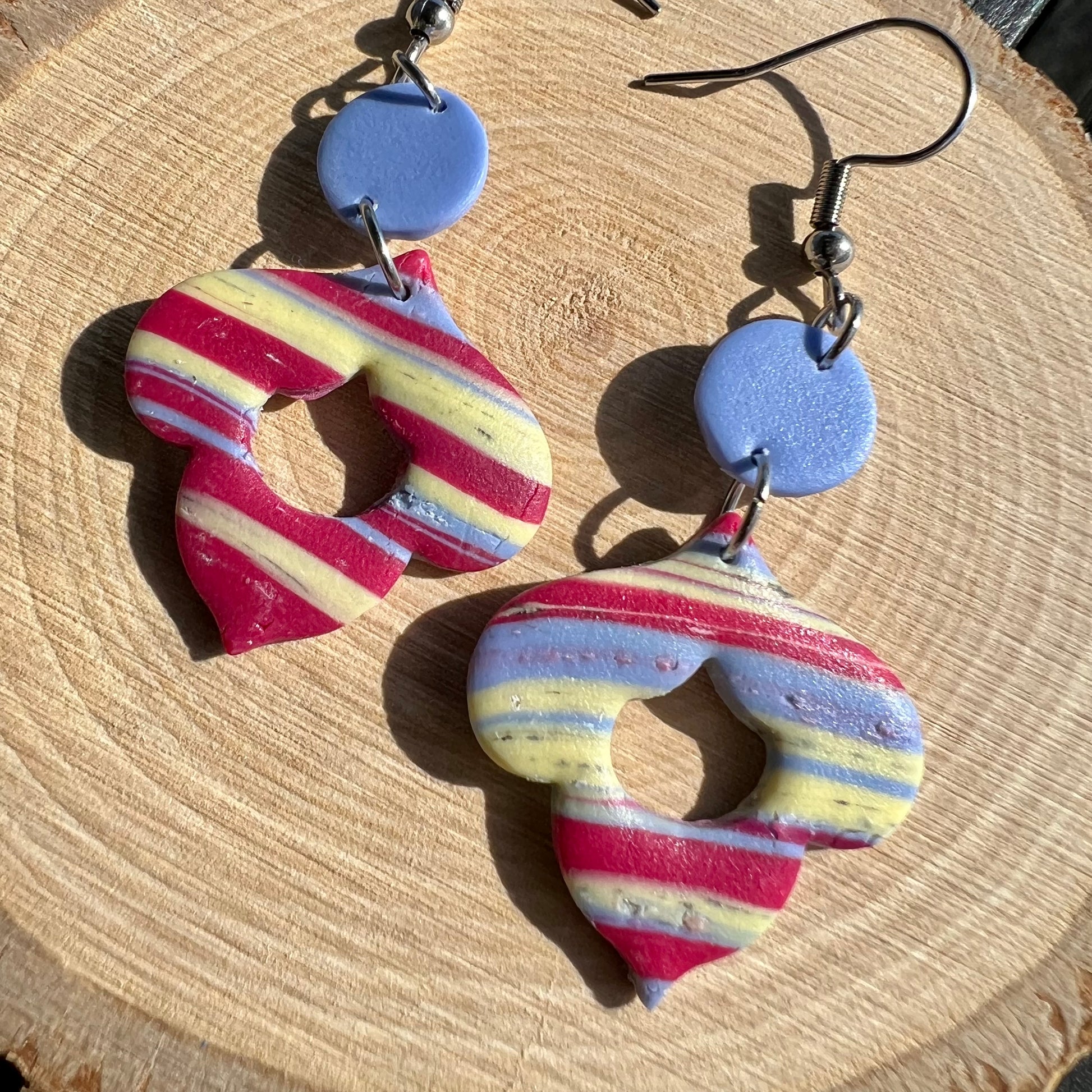 One of a kind øreringe i cernit ler. Smykkedele i kirurgisk stål. Leveres i smykkeæske.
