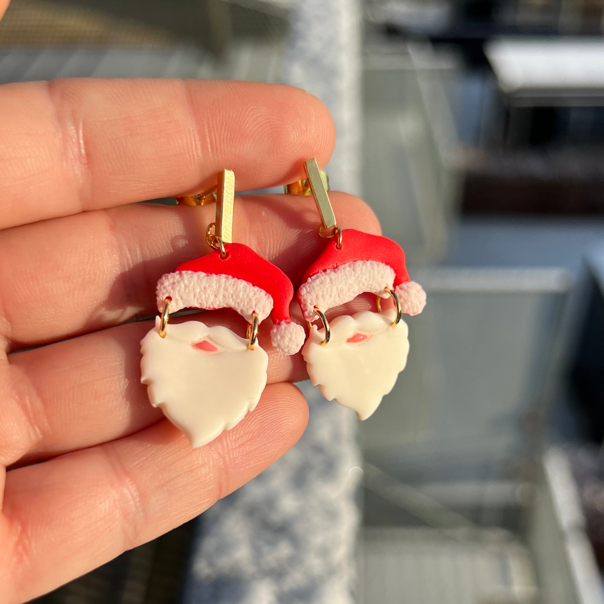 Jule øreringe i cernit ler med håndmalede detaljer, lakeret med resin. Smykkedele i kirurgisk stål. Leveres i smykkeæske.