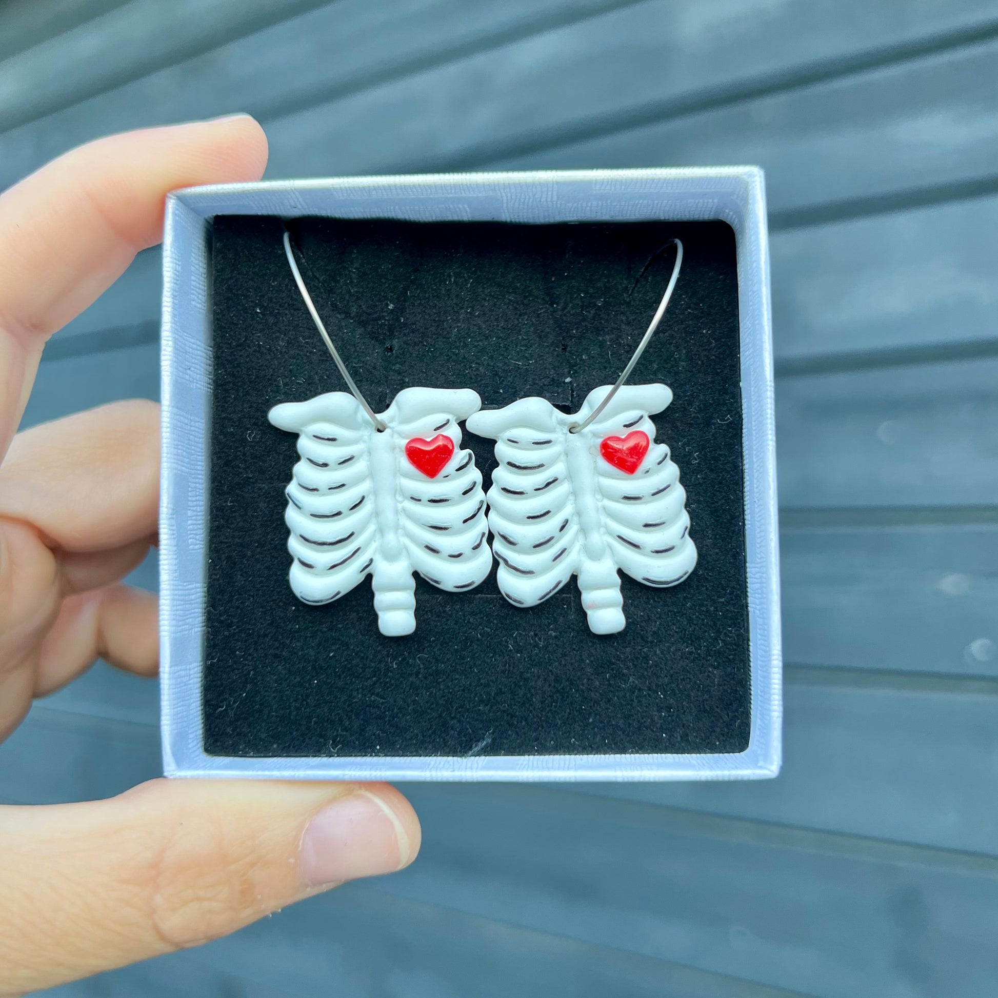 Øreringe i cernit ler med håndmalede detaljer, lakeret med resin. Smykkedele i kirurgisk stål. Da alle smykkerne er håndlavet kan de variere en smule i udseende. Leveres i smykkeæske.