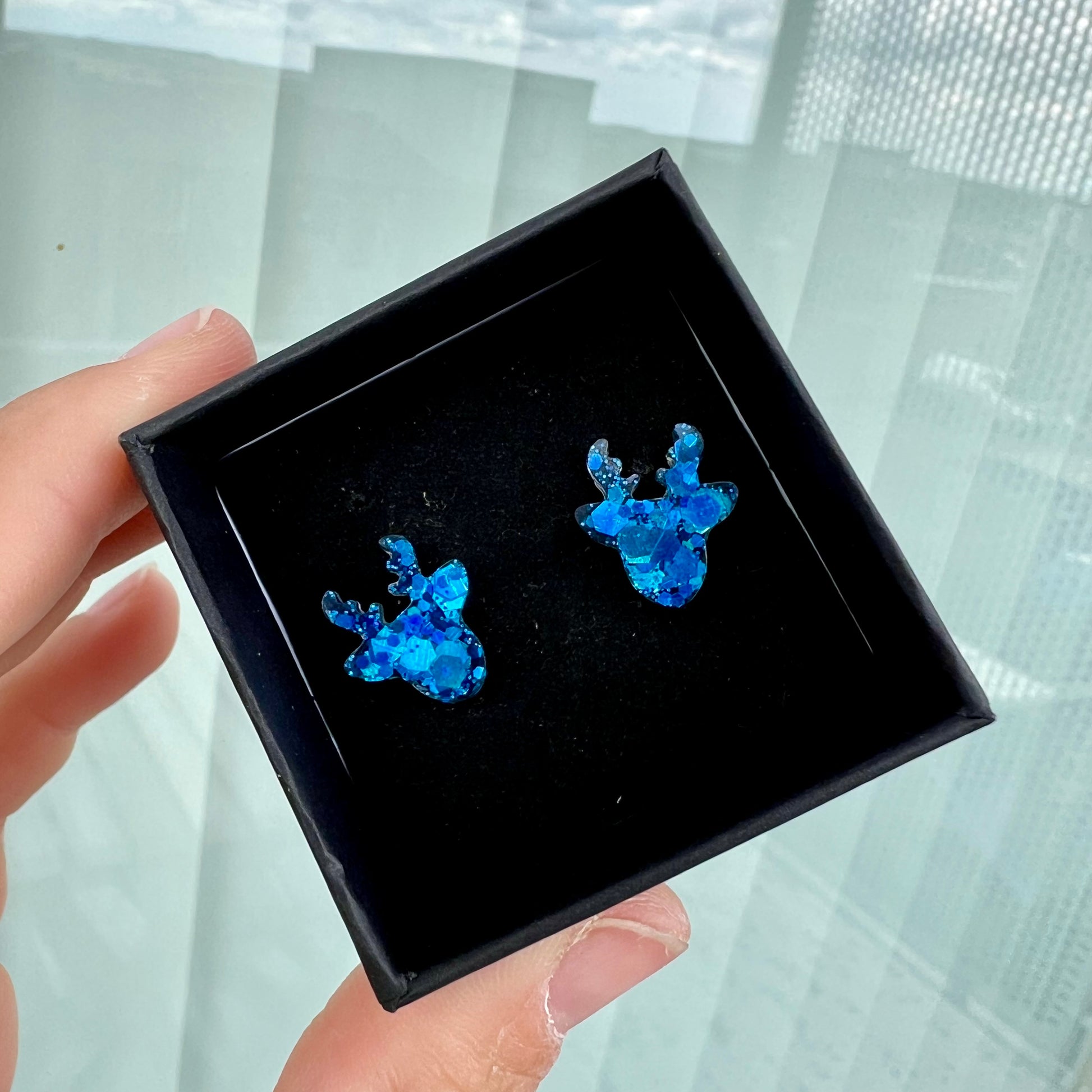 Ørestikkere i resin. Smykkedele i kirurgisk stål. Leveres i smykkeæske.