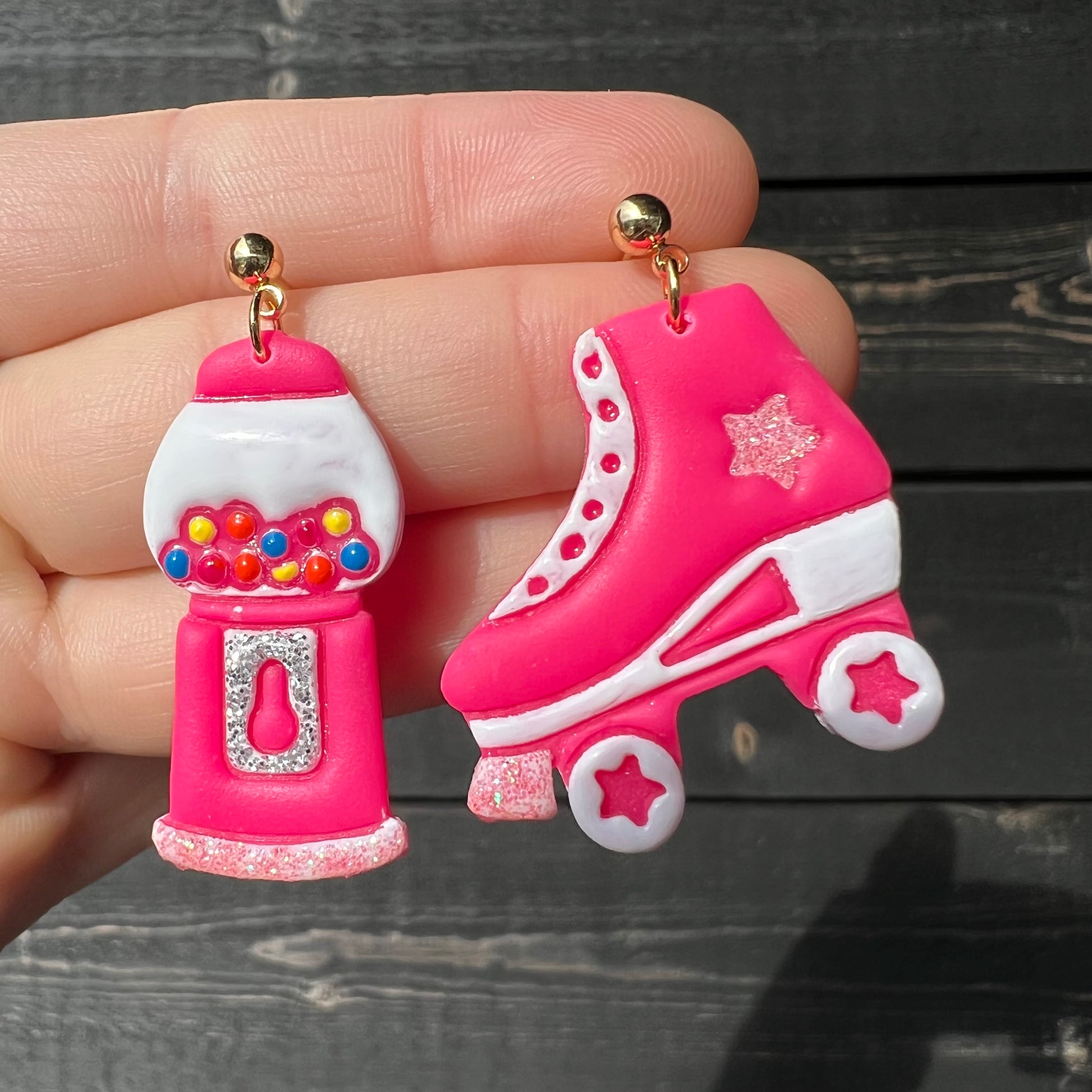 Barbie øreringe i cernit ler med håndmalede detaljer, lakeret med resin. Smykkedele i forgyldt kirurgisk stål. Da alle smykkerne er håndlavet kan de variere en smule i udseende. Leveres i smykkeæske.