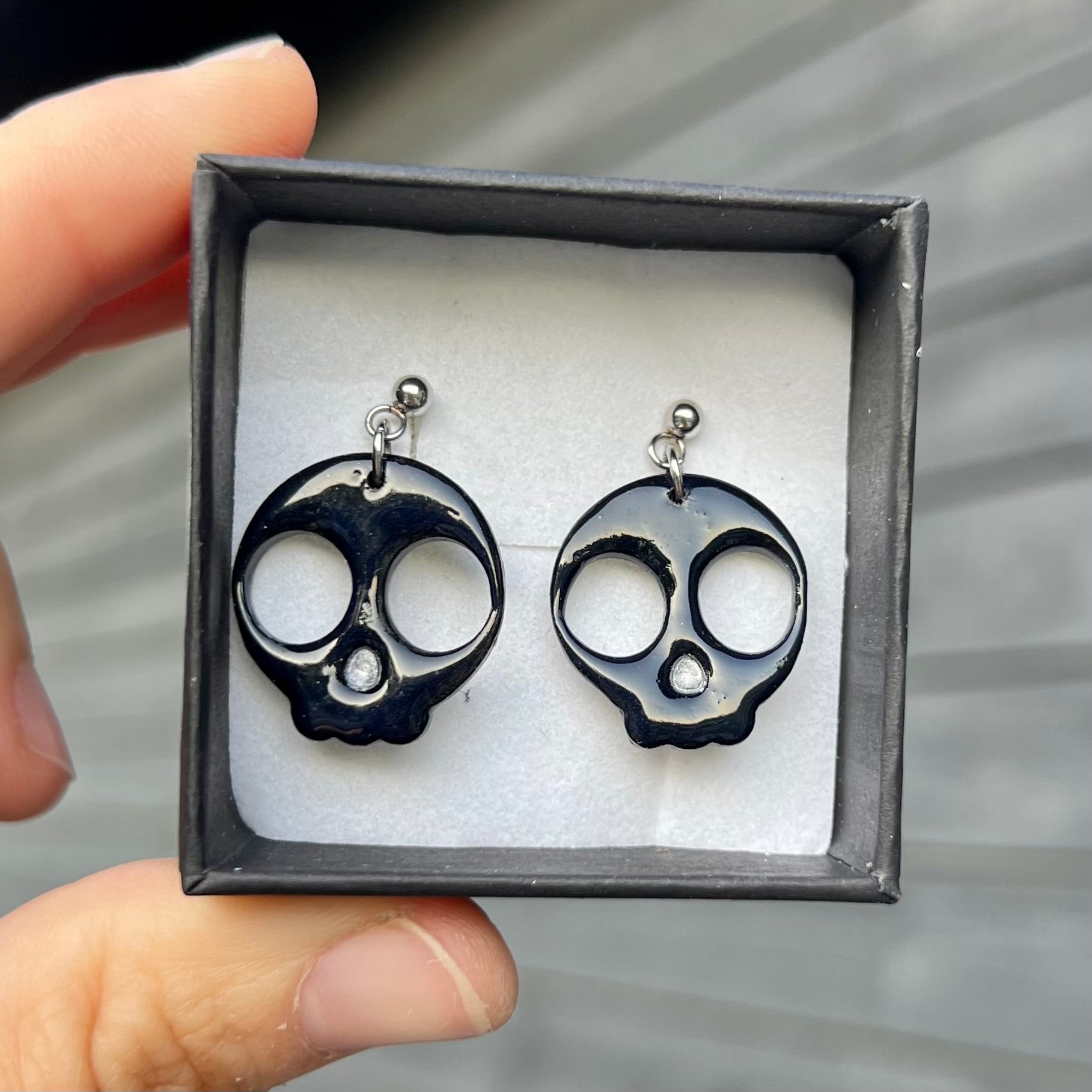 Øreringe i cernit ler, lakeret med resin. Smykkedele i kirurgisk stål. Da alle smykkerne er håndlavet kan de variere en smule i udseende. Leveres i smykkeæske.