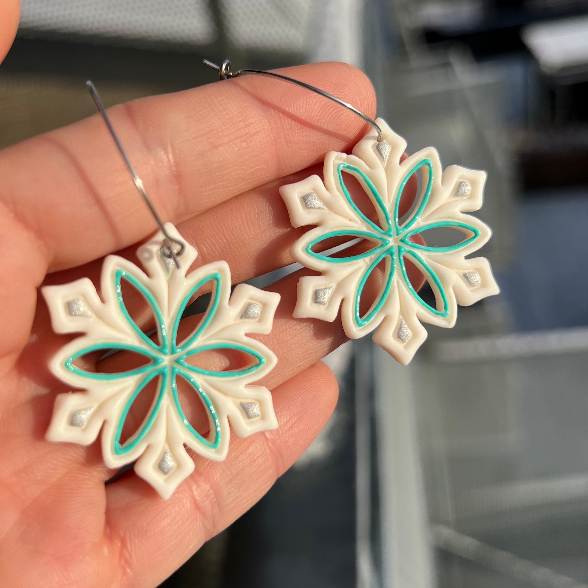 Jule øreringe i cernit ler med håndmalede detaljer, lakeret med resin. Smykkedele i kirurgisk stål. Leveres i smykkeæske.