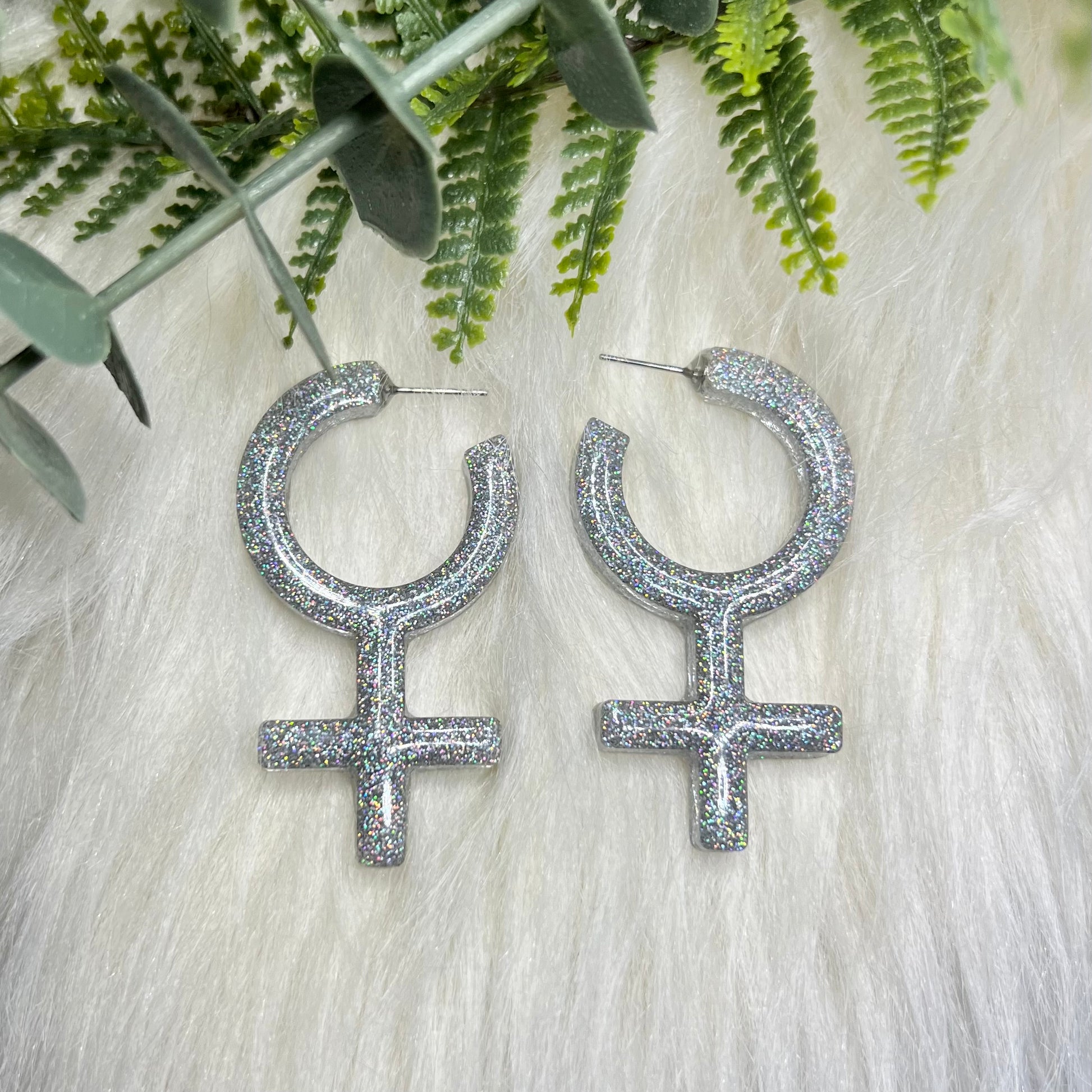 Venus øreringe i resin. Smykkedele i kirurgisk stål. Da alle smykkerne er håndlavet kan de variere en smule i udseende. Leveres i smykkeæske.