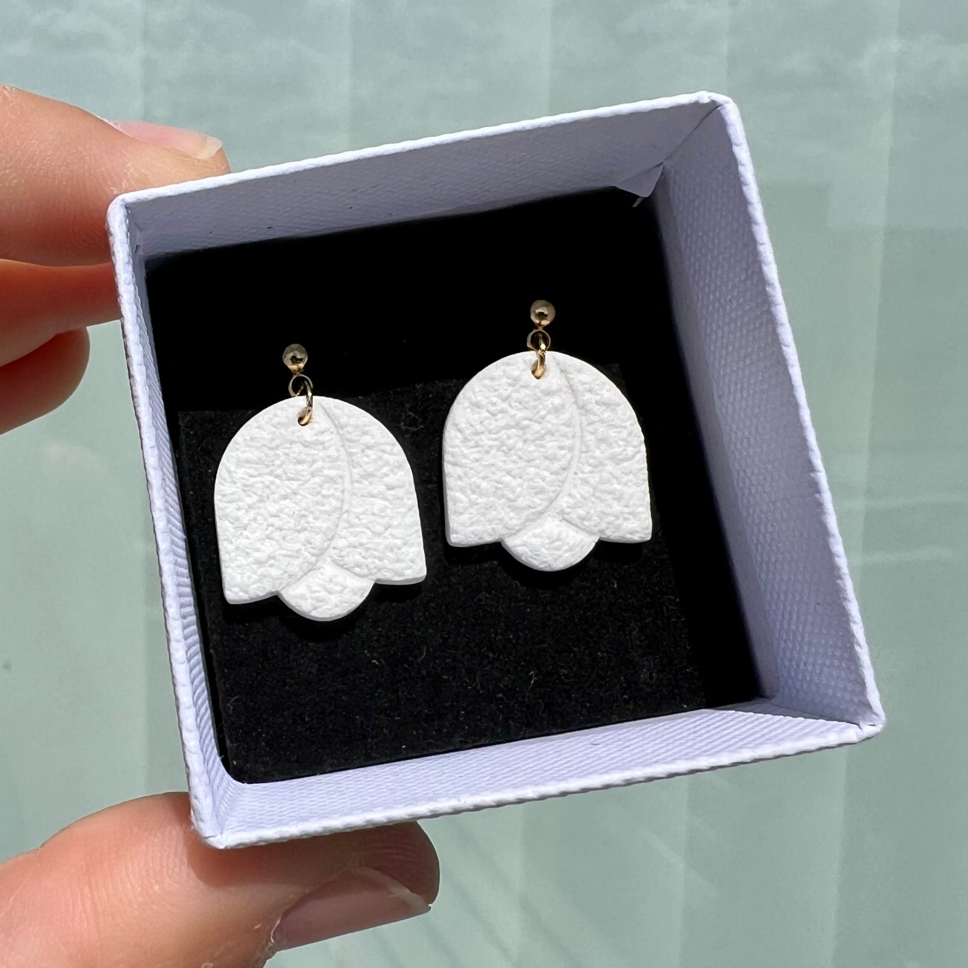 Øreringe i cernit ler. Smykkedele i kirurgisk stål. Leveres i smykkeæske.