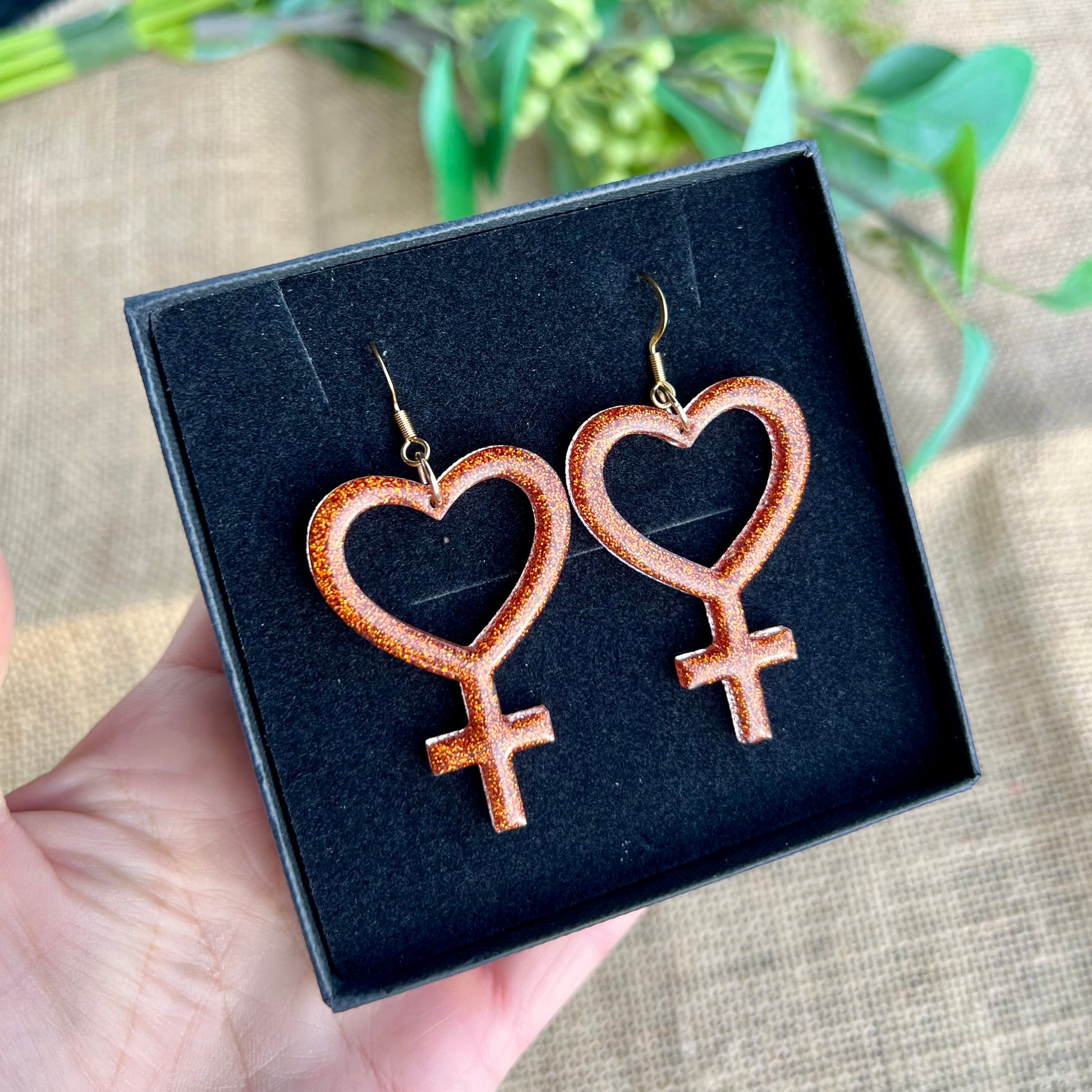 Venus øreringe i resin (orange farve). Smykkedele i kirurgisk stål. Da alle smykkerne er håndlavet kan de variere en smule i udseende. Leveres i smykkeæske.